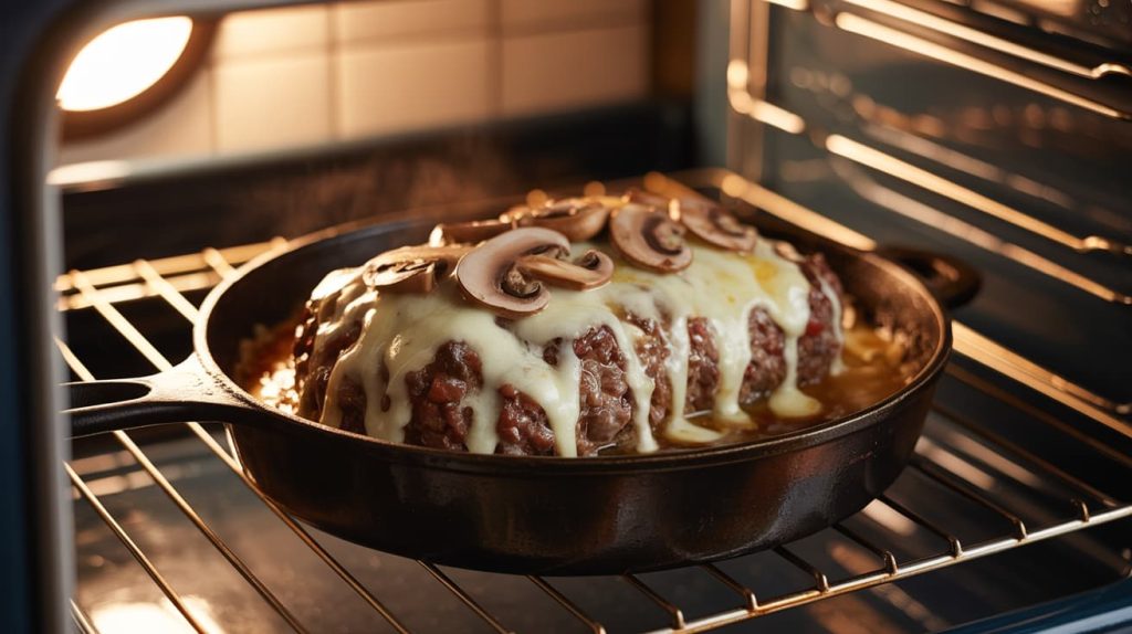 The mushrooms melt into the meat, making it juicy and deeply flavorful. The Swiss cheese adds a creamy, mild sharpness that doesn’t scream for attention it just makes everything better.