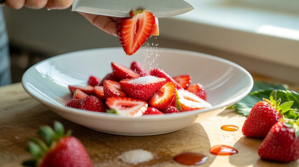 👉 Attention Trick: This draws out juices and creates a natural strawberry syrup.